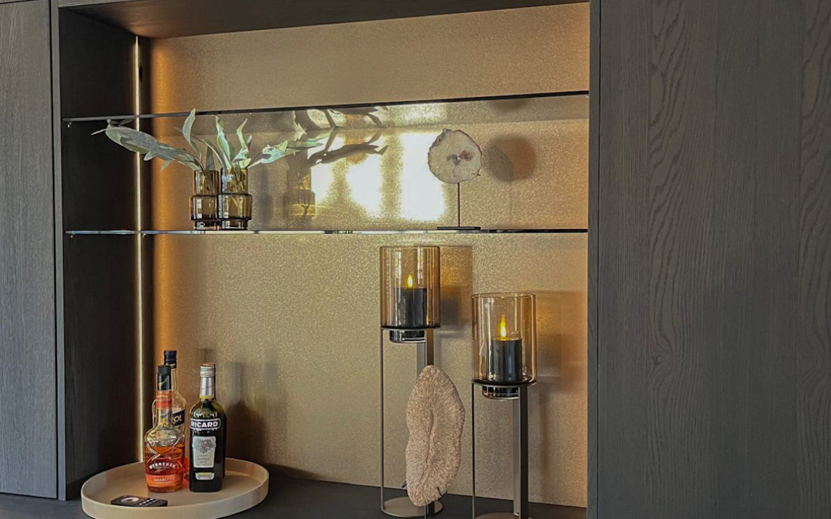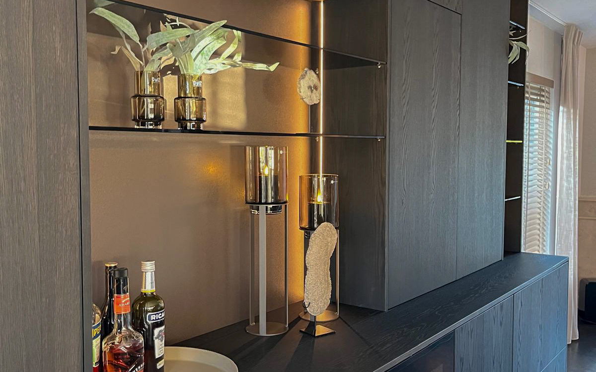 Voor deze opdracht stond de wens van de klant centraal: een kast met meer allure, extra opbergruimte en een perfecte aansluiting op het bestaande interieur. Daarnaast was er een specifieke wens om een stijlvolle wijnhoek te creëren. Om deze elegante uitstraling te bereiken, hebben we gekozen voor luxe natuurlijke materialen die niet alleen een hoogwaardige uitstraling bieden, maar ook zorgen voor een harmonieuze eenheid in het ontwerp.