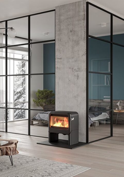 Rock is een robuuste houtkachel met zachte randen. Eenvoudige bediening door de enkele luchtregeling, direct aansluitbaar op de buitenlucht en innovatief “slamlock” sluitingsmechanisme.