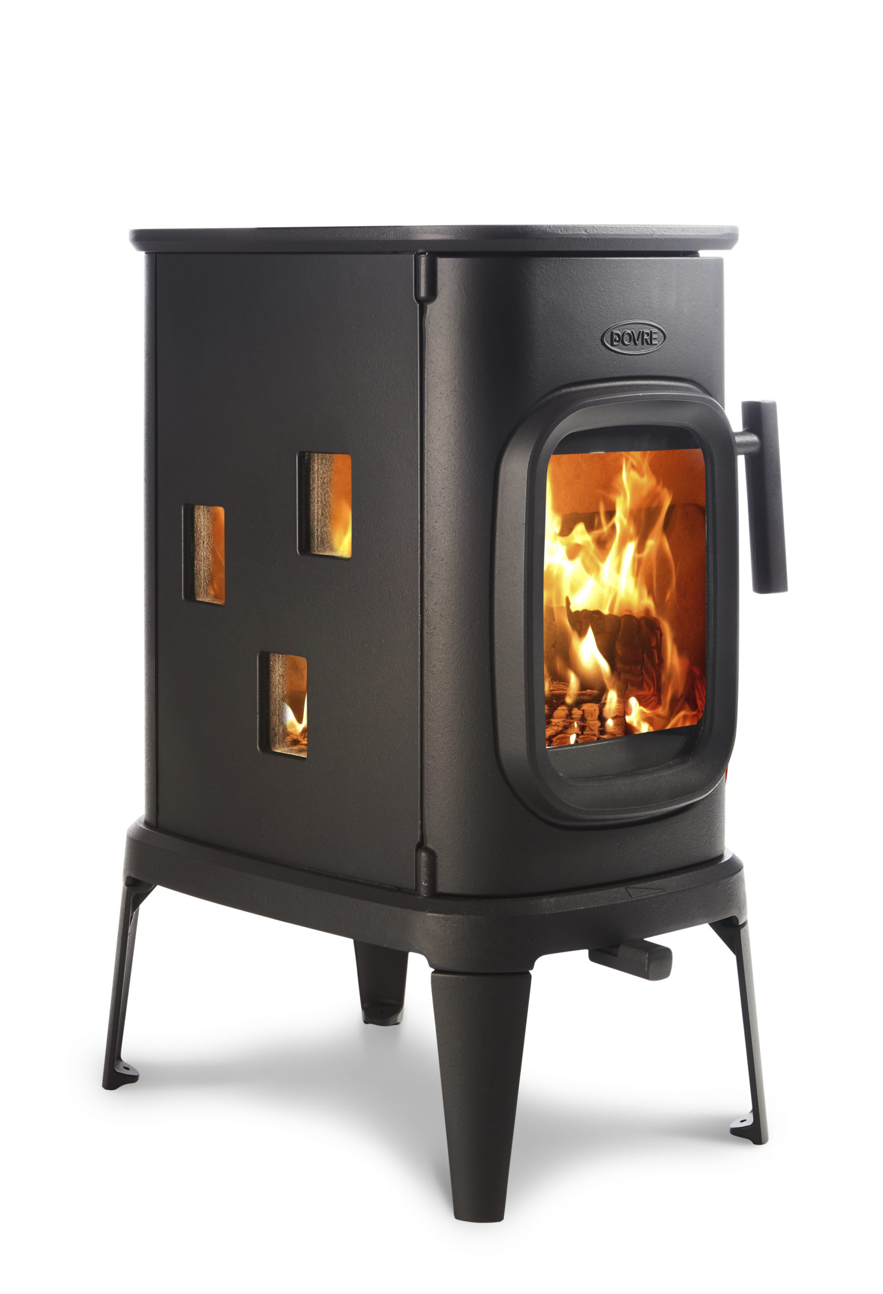 De Saga 107, een compacte kachel met 7 vensters, een 3-zijdig vuurzicht, die een warme, lichte en gezellige sfeer rondom creëert.